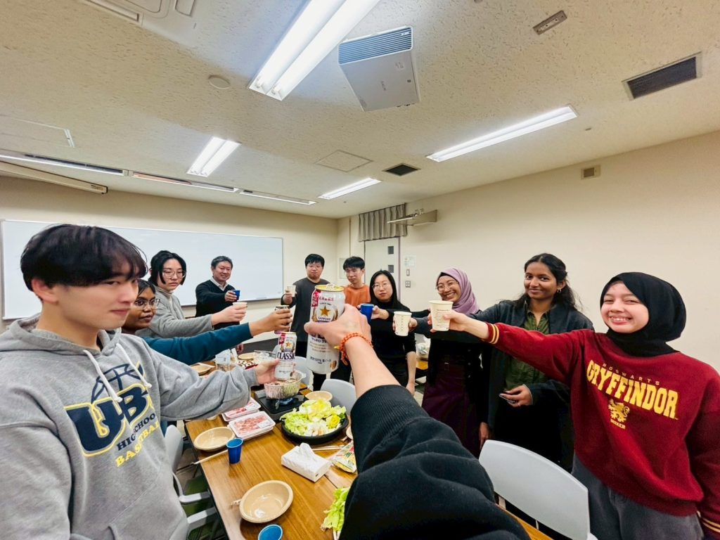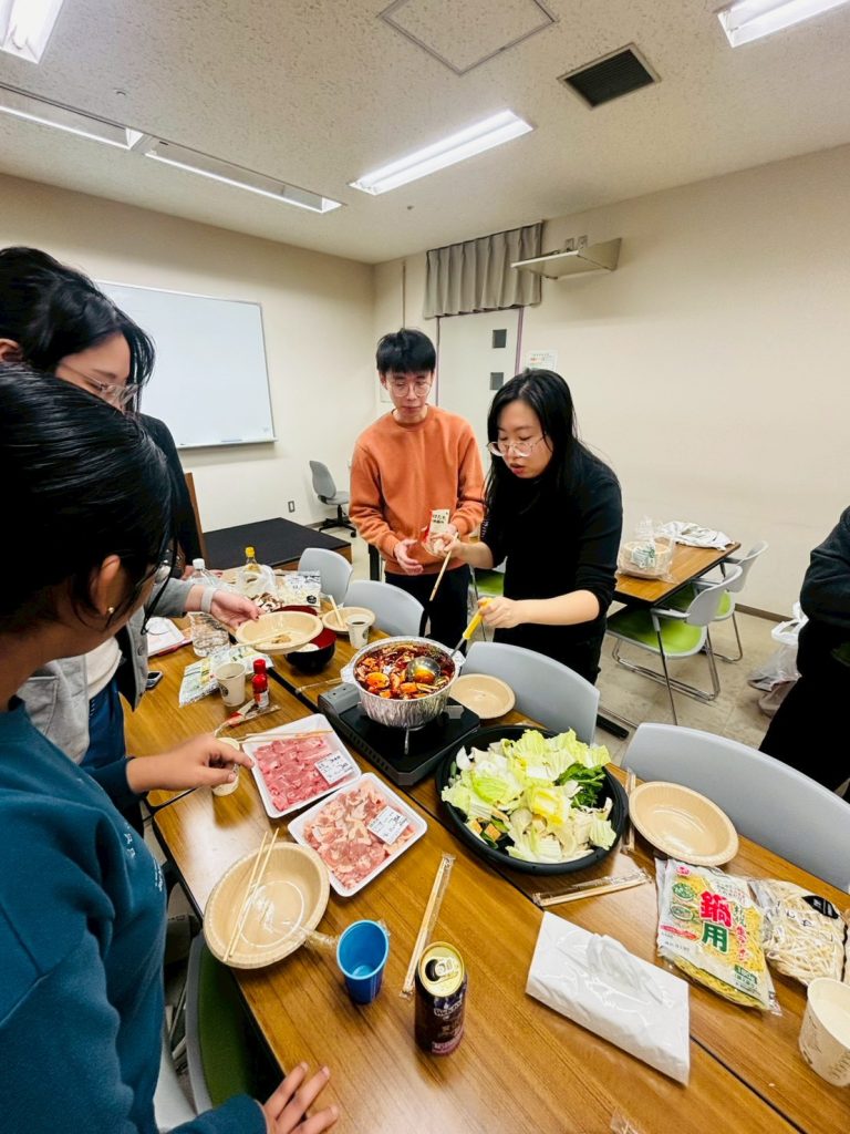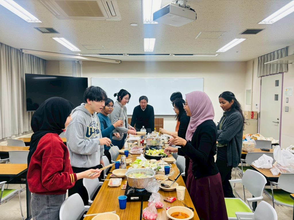 スパイスの効いた鍋を囲んで、研究の話から日常の話題まで自然と会話が弾み、新入生と在籍メンバーがリラックスした雰囲気の中で交流を深める良い機会となりました。辛さも具材も多国籍な火鍋を囲み、国籍や学年を越えたにぎやかな交流の場となりました。